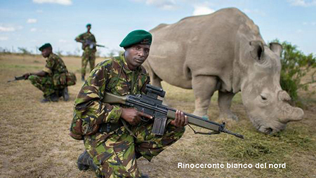 Tutt'altra condizione, purtroppo, è quella del Rinoceronte bianco settentrionale (Ceratotherium cottoni), chiamato anche rinoceronte delle praterie e rinoceronte dalla bocca quadrata; un tempo considerato una sottospecie (Ceratotherium simum cottoni) è stato elevato al rango di specie autonoma, proprio mentre se ne constatava la quasi totale estinzione, con soli nove esemplari conosciuti. In un'area controllata (tra il Sudan ed il Kenya), vive l'ultimo Rinoceronte bianco settentrionale maschio, sorvegliato in continuazione da sentinelle armate.